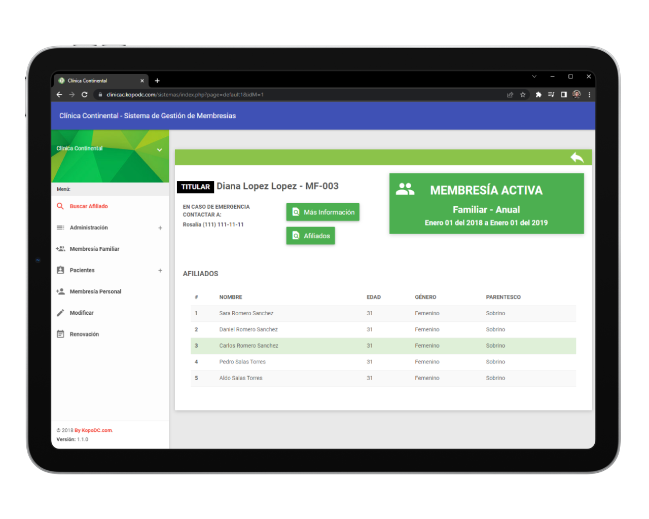 Sistema desarrollado a la medida para gestionar membresias de pacientes para la Clinica Continental de Xalapa